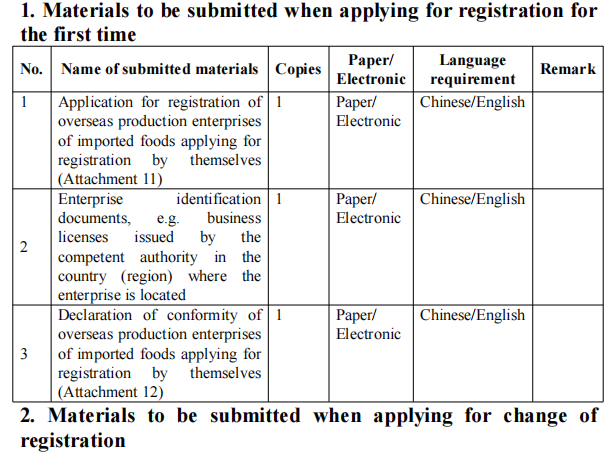 Overseas production enterprises of the foods other than the above 18 categories of products shall apply to the General Administration of Customs and submit application materials by themselves or by entrusting their agents.