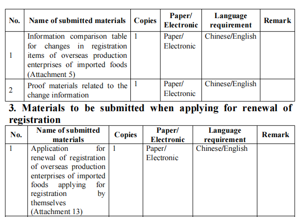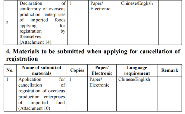 Unless otherwise agreed by the competent authority of the relevant country (region) and the General Administration of Customs on the application method and application materials, applications for the registration, change, renewal and cancellation of overseas production enterprises of imported foods shall be submitted through the registration management system of imported food overseas production enterprises.